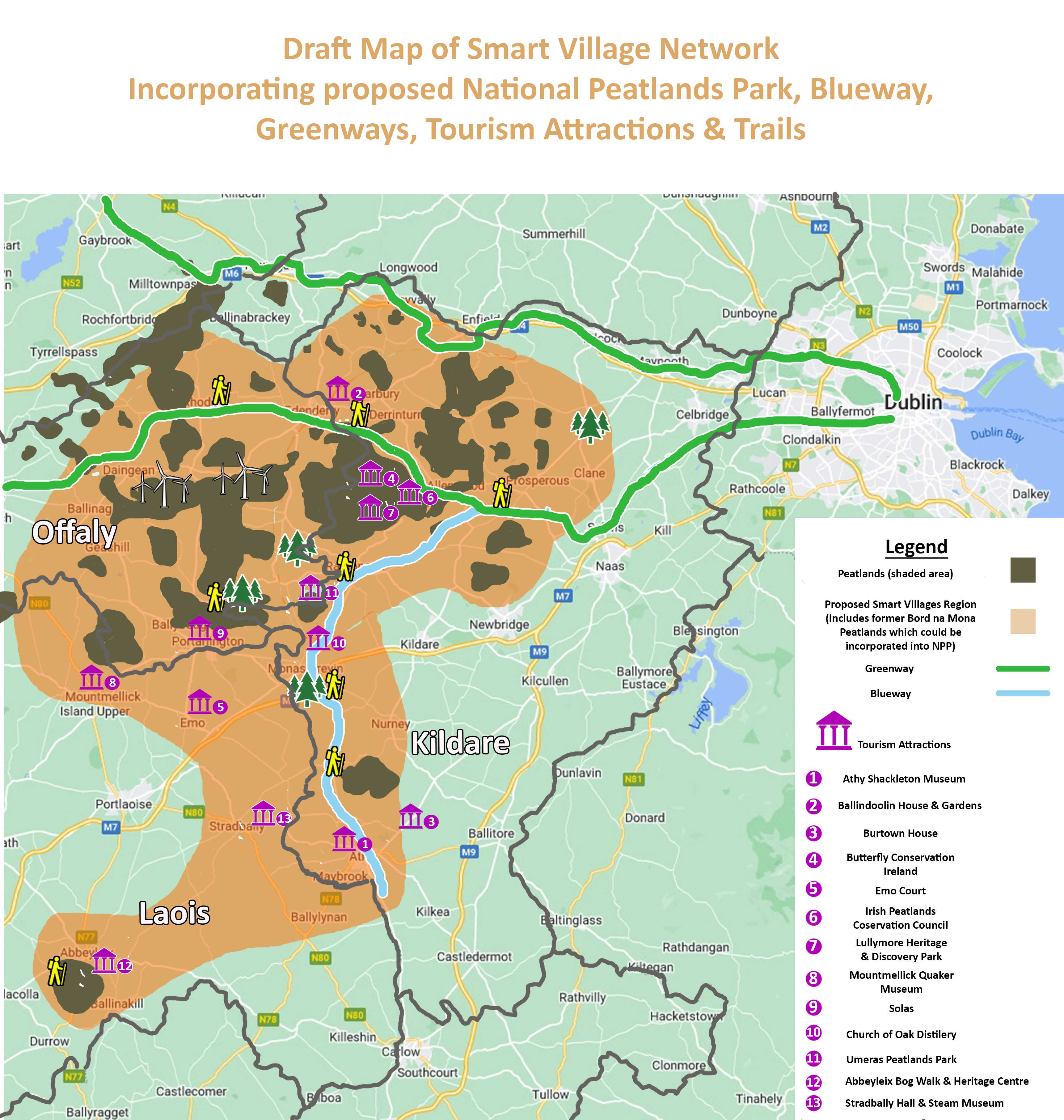 Reason for Amendment: To assist in the delivery of Just Transition and a collabortive approach to realise the potential for peatlands tourism. The inter County approach is important as it reflects shared peatland landscape, related culture and similar socio-economic challenges for the region. See attached Draft Map of West Kildare Smart Rural Alliance.